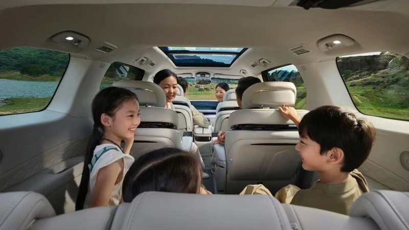 空间方面,星海V9提供了墅居式全场景座舱。副驾座椅支持完全放倒,与二排座椅形成平面。二排座椅采用零重力航空座椅设计,具备独立扶手、扶手屏、舒适头枕、电动腿托等功能,支持电动调节、加热、通风和按摩功能。第三排座椅支持折叠放倒和隐藏设计,进一步提升空间利用率。车内共设有45处储物空间,行李箱空间593L—2792L,充分满足日常所需。