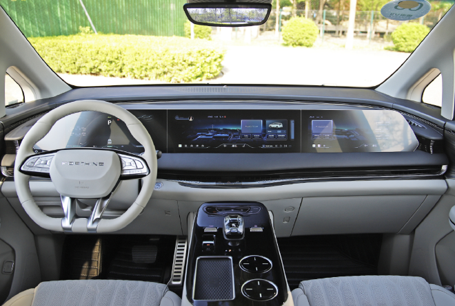 内饰方面,星海V9配备12.3英寸液晶仪表屏、16.2英寸触控液晶屏和12.3英寸副驾娱乐屏,41英寸三联屏设计,科技感和豪华感十足。搭载腾讯TAI 4.0智能系统,高通8155芯片,确保系统运行流畅。新车采用电子水晶挡把设计,配备64色氛围灯,营造出浓厚的豪华氛围。