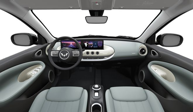 内饰方面,2024款五菱缤果配备双10.25英寸悬浮高清屏幕。新增了空境绿内饰配色。灵犀互联款333km和灵犀尊享款410km车型的车机搭载了Ling OS灵犀系统,具备智能语音交互、在线导航等功能,并新增了爱奇艺、QQ音乐等娱乐应用,丰富了用户的车内娱乐体验。