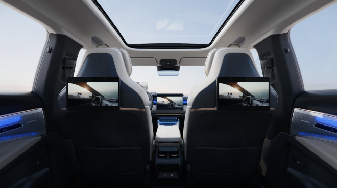 内饰方面,2025款领克08EM-P搭载12.3英寸全液晶仪表和15.4英寸超清全面中控大屏,拥有92英寸的AR-HUD,首搭Co Pad多屏互联,用户在车内实现车、Pad和手机的多屏畅联体验。配备LYNK Flyme Auto 1.6.0车机系统(老用户可通过OTA升级),拥有包括哨兵模式、洗车模式、iPhone UWB/NFC数字钥匙等超过80项功能。新增12V后备箱电源。新车配备WANOS全景声,带来殿堂级音响音效。