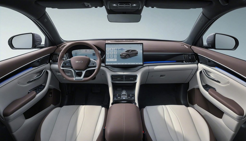 内饰方面,2025款宋PLUS EV全系标配12.3英寸全液晶仪表盘,根据不同车款配备12.8英寸或15.6英寸自适应悬浮中控屏。提供玄天色+砂石米全新内饰配色。主驾拥有电动座椅调节功能。新增方向盘加热、50W手机无线充电、车载ETC等超实用功能。新车拥有全景天窗、31色环绕式多彩氛围灯。