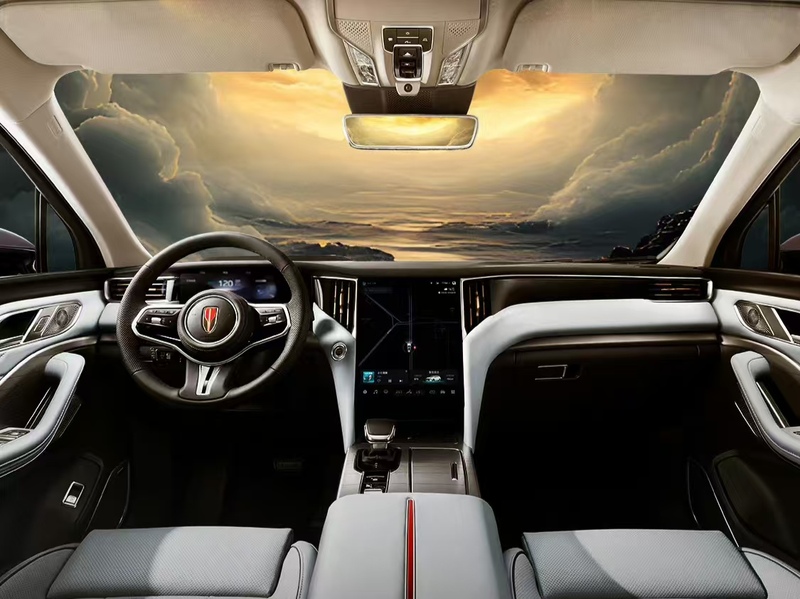 内饰方面,红旗HS7PHEV搭载12.3英寸全液晶仪表盘和12.6英寸中控屏。顶配车型拥有投射距离7.5米的高清AR HUD抬头显示系统,提供70英寸投射面积,为驾驶者带来更加直观的驾驶信息体验。车内采用大量哑光金属与实木装饰,使车内氛围更具高级感。配备三幅式多功能方向盘,采用电子档把。