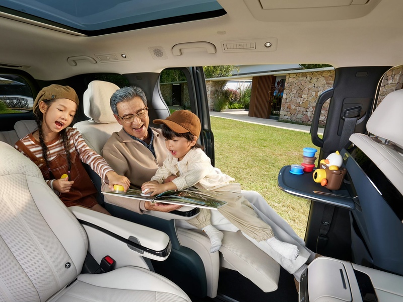 座椅布局采用经典 2+2+3 七座设计,前排Nappa真皮座椅,支持通风、加热、按摩、记忆功能,第二排独立座椅配备腿托、小桌板、头枕音响,支持加热、通风、按摩功能。第三排座椅支持前后 100mm移动与一键折叠放平功能,后备箱常规容积为520L,扩展后可达2036L,兼顾家庭出行与商务载物需求。