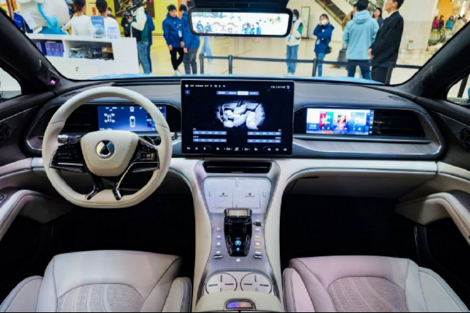 内饰方面,全新腾势N7搭载17.3英寸悬浮式中控屏,两侧对称设计的双10.25英寸全液晶仪表盘和副驾驶娱乐屏,后排提供7英寸多功能后排扶手屏,将科技感和豪华感完美融合,实现了人机交互的**体验。新车搭载56英寸AR-HUD抬头显示。车内采用了柔软皮质包覆搭配环保真木饰板。电动方向盘、透明水晶档把。提供了四款环绕专属内饰配色。1.93㎡全景天幕搭配电动遮阳帘。同时拥有全球首搭帝瓦雷音响,营造***移动歌剧院感官享受。