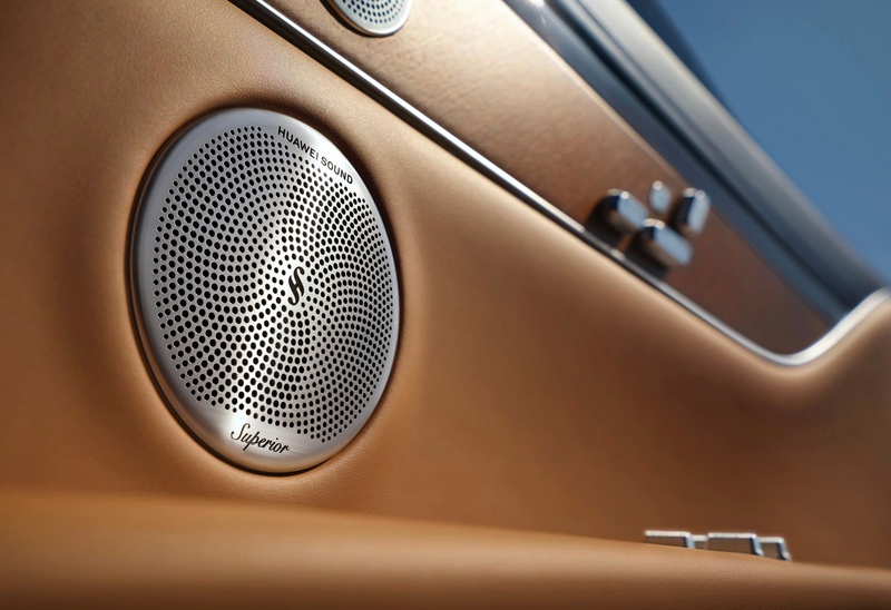 新车配有香氛系统。全车共7处遮阳帘,提供全方位隐私空间。新车搭载全新HUAWEI SOUND SUPERIOR华为悦彰音响**系列,前置星环散射体高音单元和后置涡轮超重低音单元,25声学单元,提供7.1.4环绕声场,2080W超强功放。