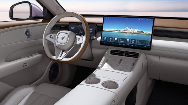 内饰方面,岚图FREE+搭载10.25英寸液晶仪表和15.6英寸2K超清中控屏。首款搭载全新座舱系统,中控屏可与仪表盘、后排扩展屏、29英寸AR-HUD、后排中央控制屏实现五屏联动,支持手机无缝对接与跨设备任务流转。后排MagLink拓展坞适配多品牌平板电脑。